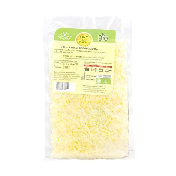 Ingredienti: acqua, riso basmati 33,5%, olio extra vergine di oliva 1,5%, sale marino.